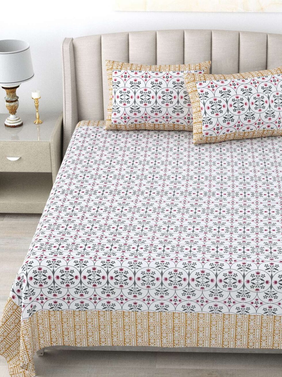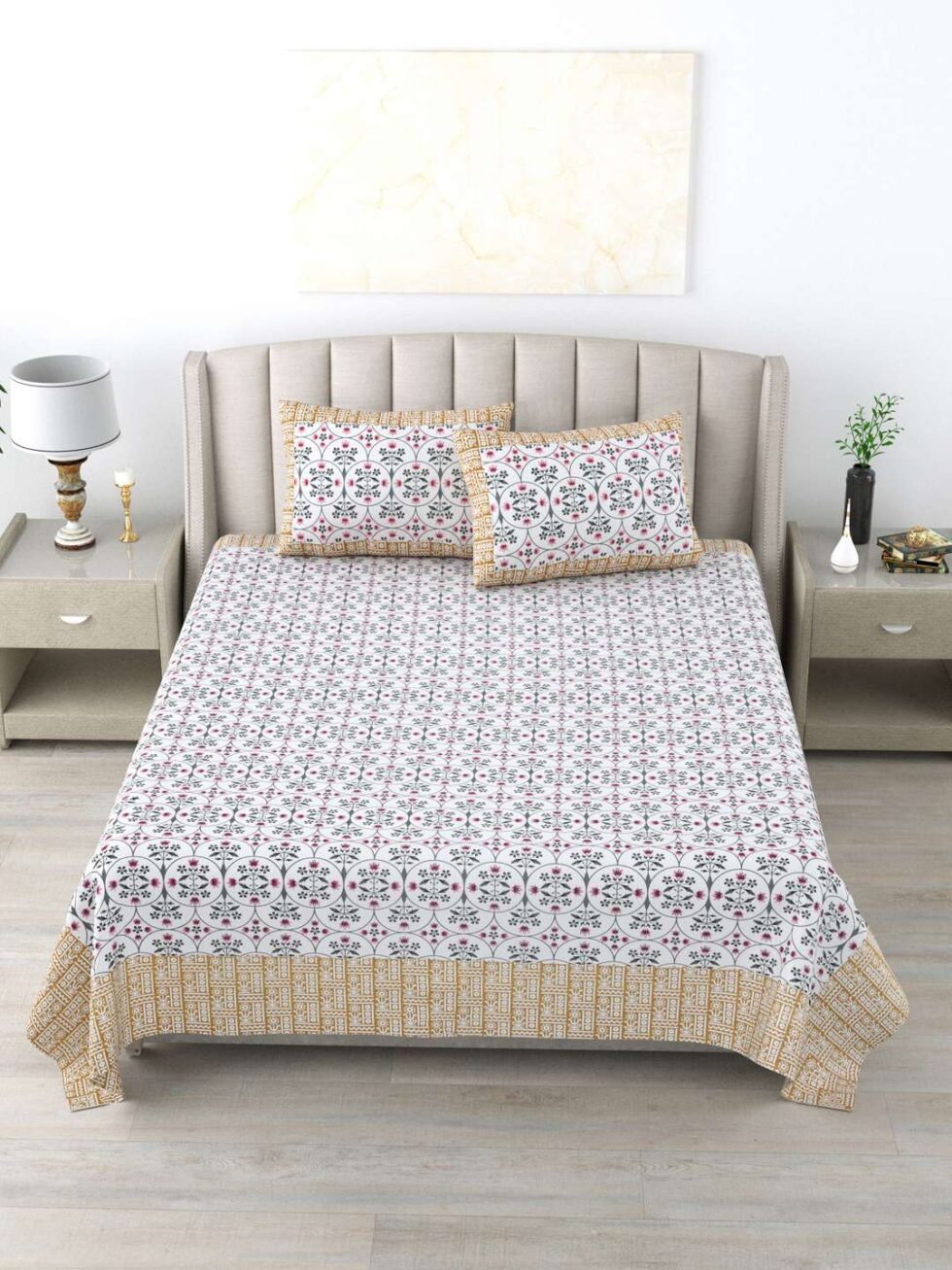 100% Pure Cotton Traditional Printed Bedsheet for Double Bed King Size Bedsheet with 2 Pillow Covers